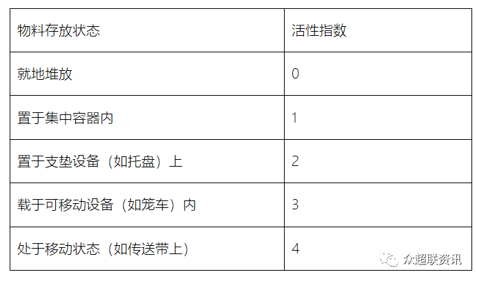 物流的基本特征是“流动”,物料流动的难易程度叫做物料的“活性”,它可以用活性指数来表示。通过搬运设备配备,提高货物的活性系数。